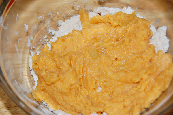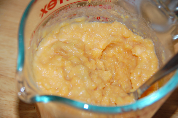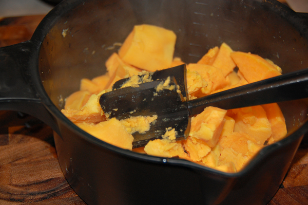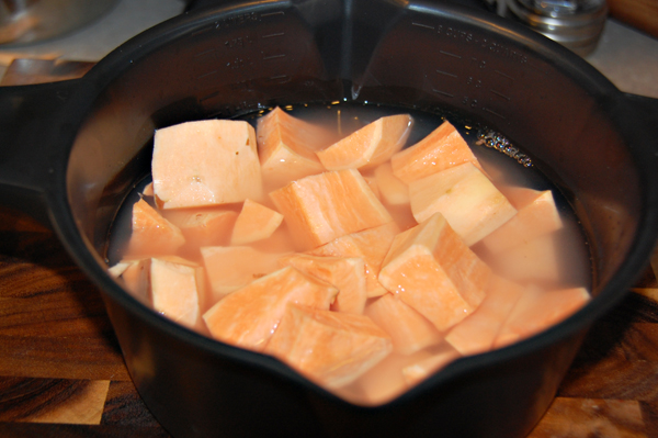 So, this time with my baking powder firmly in hand, I boiled up a couple of sweet taters in my micro-cooker.