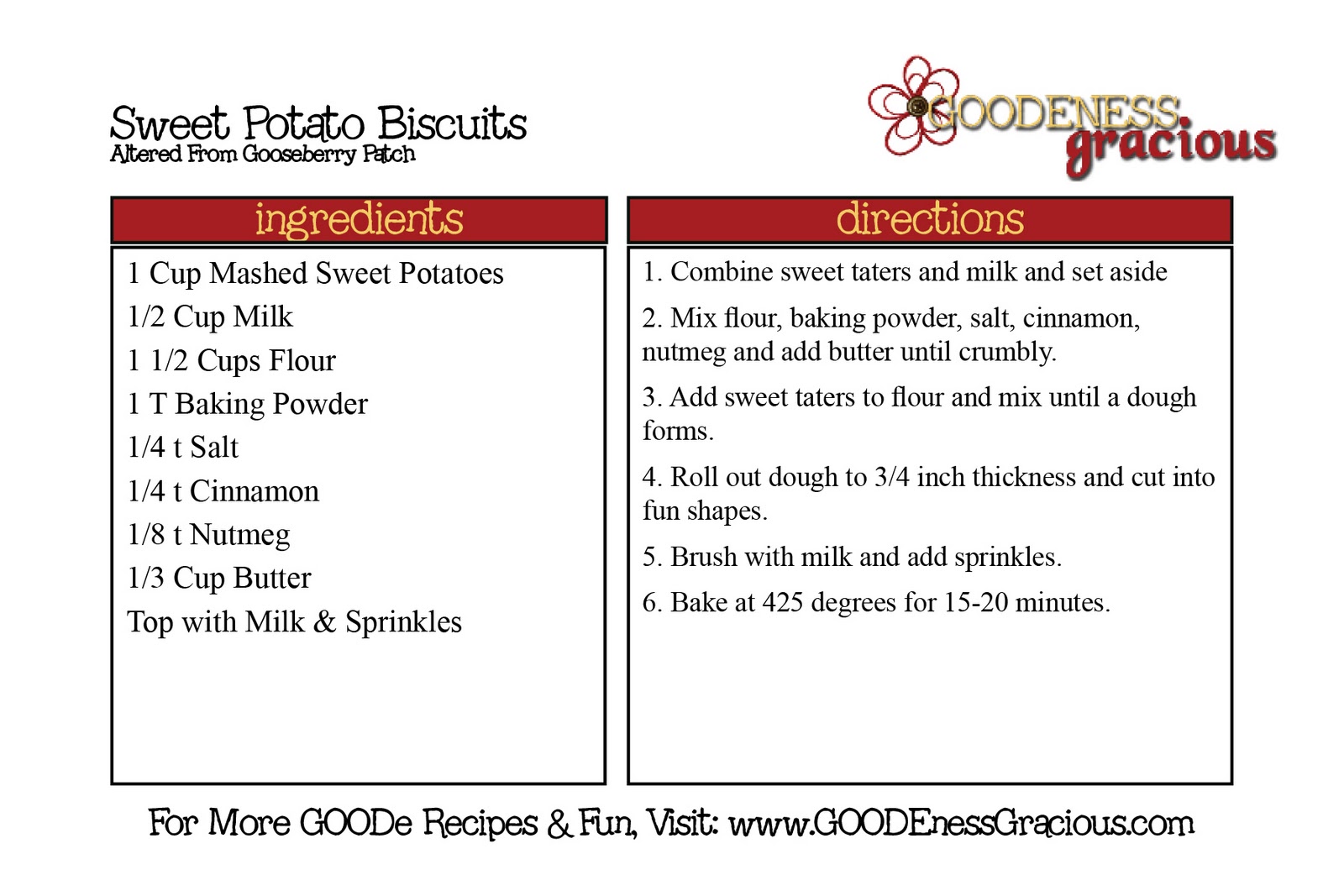 Rest assure this Goode & Gooseberry Project Recipe is indeed Sweet Potato Biscuits, we just used sprinkles instead of regular sugar to top them off when Miss Add and I were baking these up for The Kids Cook Monday 😉
