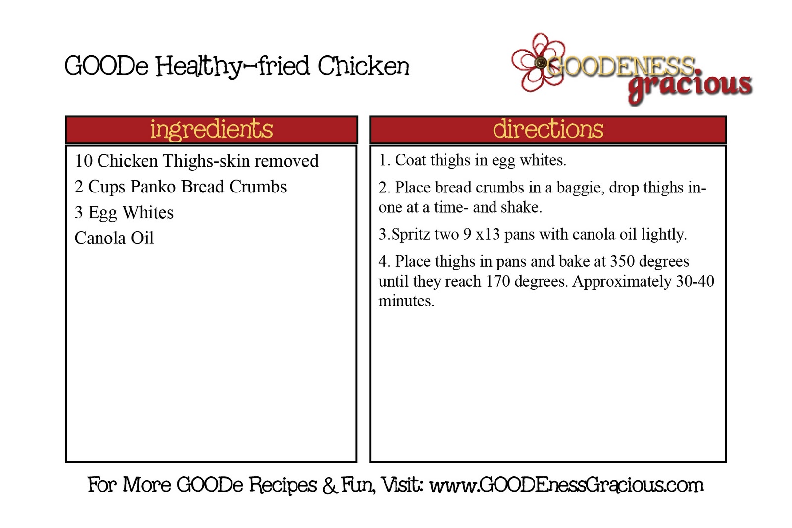 We like to call it GOODe & Healthy-fied -“fried” Chicken ’round these parts ๐