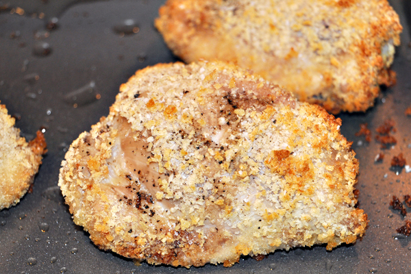 Perfect crunchy shell and perfectly juicy inside–just like fried chicken– except a lot less calories and fat.