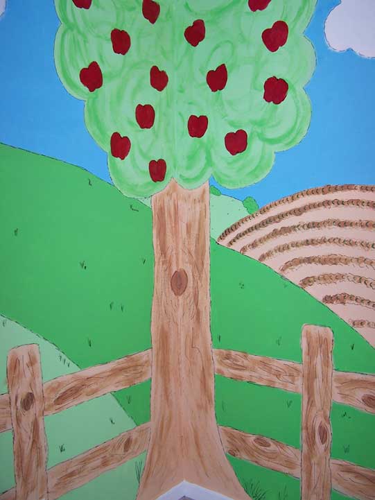 Now take the lighter paint and a curious two year old and paint in your “logs”