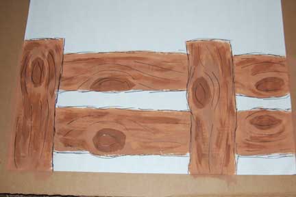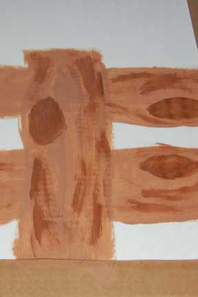 Now add more texture by stroking the darker paint randomly along each log. The key here is to make sure you have a little amount of paint on your brush, not a lot.