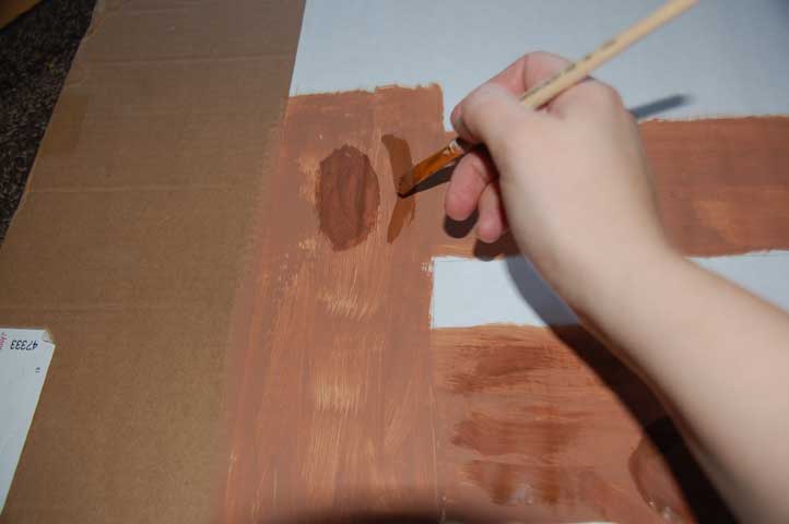 Then I grabbed two different colors of brown paint and two pathetic looking paintbrushes… let’s call them well loved.