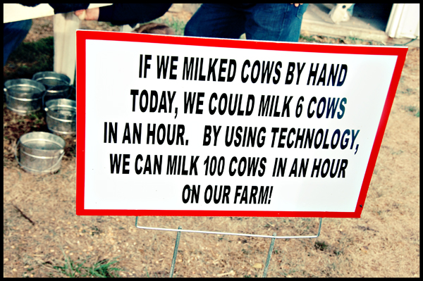 I was surprised by this sign. Can you imagine how much milk would cost these days if farms could only milk 6 cows an hour???