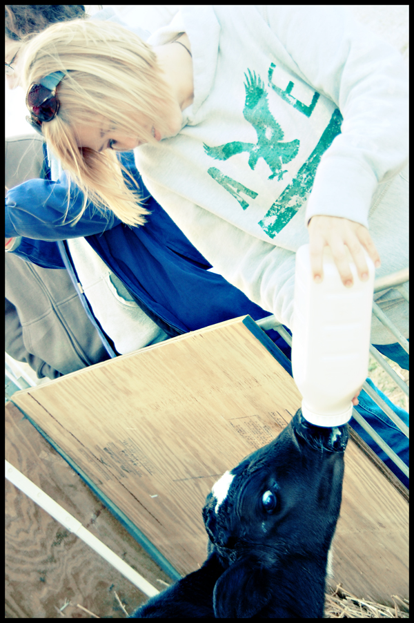 Miss Liz lured Miss Add away by offering to have her help with feeding some wee little calves…