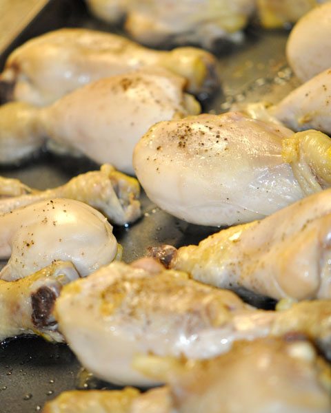 Place the drumsticks on a baking sheet and season ’em up a bit… a little pepper…