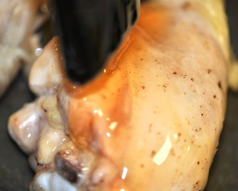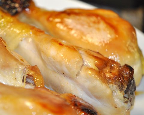 • Turn legs and brush remaining mixture on, baking for another 10 minutes or until juices are clear