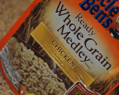 First, I grabbed two bags of Uncle Ben’s Whole Grain Medley… I chose to use one that was Chicken flavored and the other was Vegetable Harvest (I think).