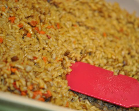 • Prepare the rice as package indicates and pour into 9 x 13 pan