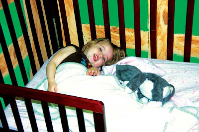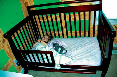 Oh, sniff sniff for sure! I remember looking in on Liv in her big girl bed (which was a regular twin size bed) & she looked so tiny in that big ol' bed. Thank goodness (or should I say "goode"ness – haha) that at least Add is taking to it so well.