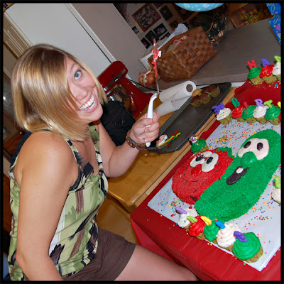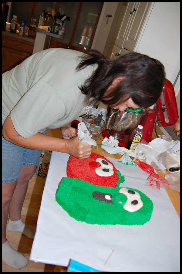 Addie decided MONTHS ago that she wanted a Bob birthday cake and that Mommy should have a Larry birthday cake, while Daddy should have a Junior birthday cake.