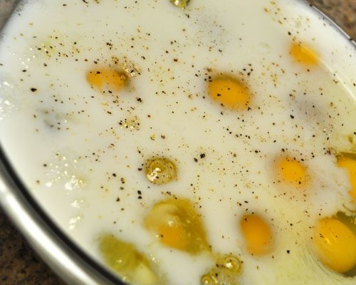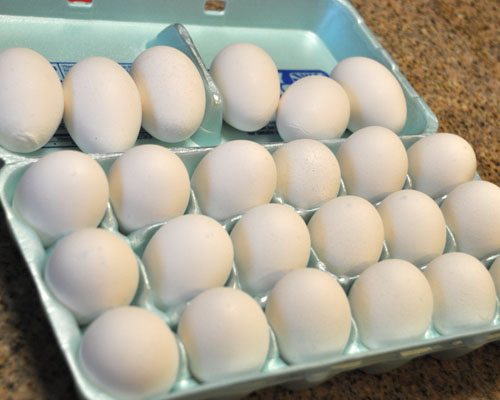 Start by putting 12 whole eggs and 12 egg whites in a bowl…