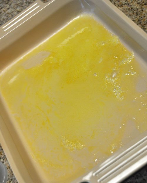 Now heat the oven to 350 and take 1/2 stick (4 T) of Light Butter and pop it in the oven until it melts…