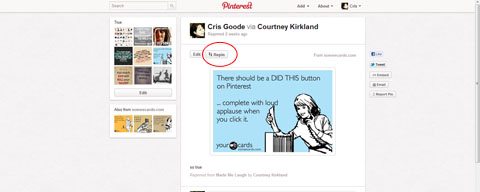 Once you find an image/idea you want to remember, you will want to repin it to one of your boards.