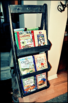 All nice ideas! Thanks for posting them. I like your little easel for cookbooks. My poor cookbooks are hidden in the pantry and only see the light of day when I'm using them.