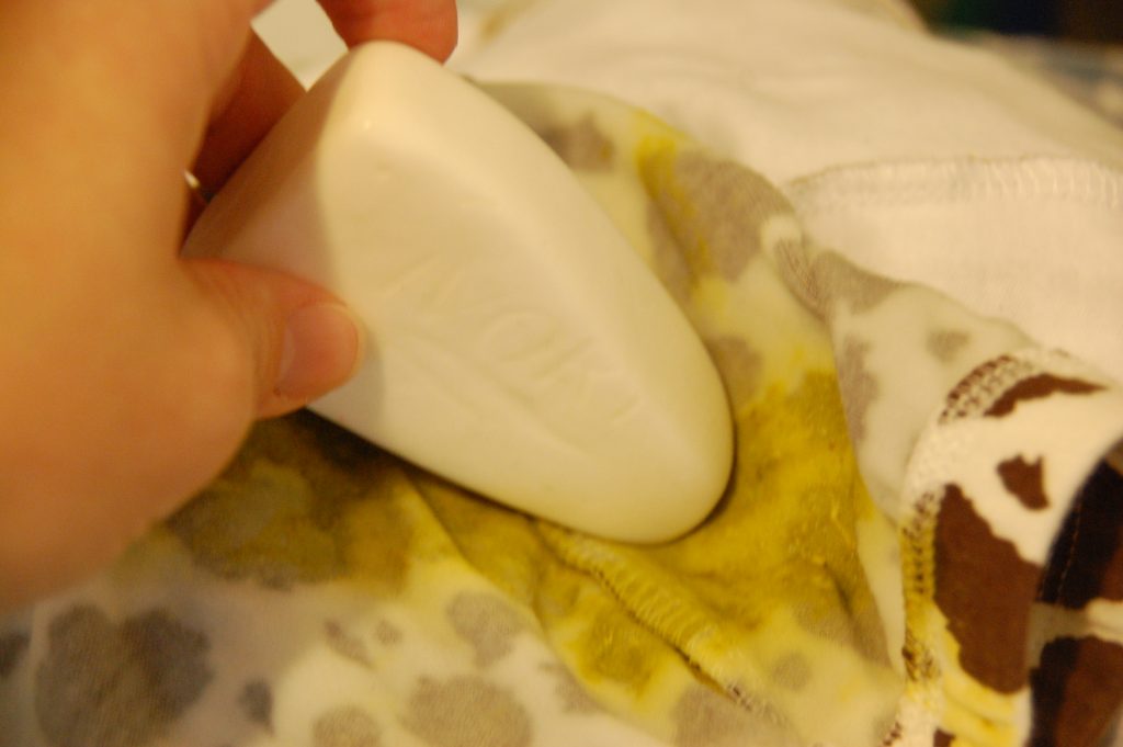 I don’t always get to wash and pre-treat all of his clothes immediately after he has dirtied them, so I separate them out from the rest of his laundry to treat right before washing. And yes, Ivory Soap gets out even dried on stains. Love it!