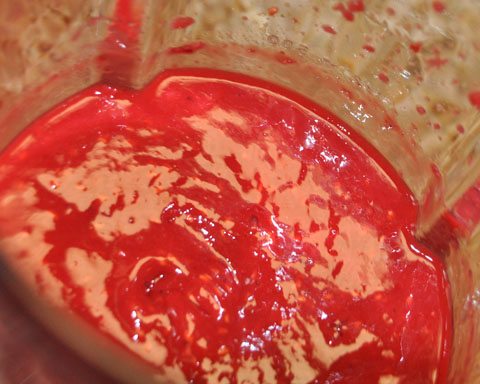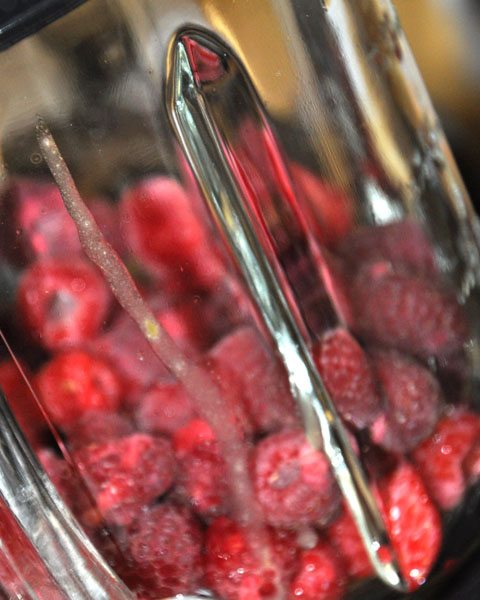 - Take 1/4 cup of mixture and place in a blender with raspberries