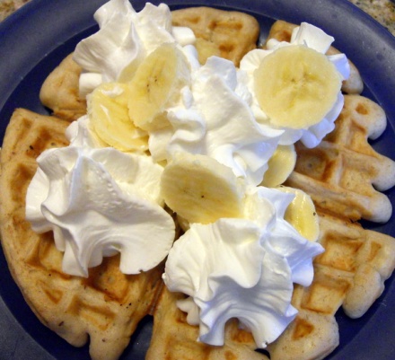 While fruit seems to be easily eaten by both kids, sometimes the dear old parents aren’t so good. That is when I pull out a banana puree and throw it in a pancake or waffle mix.