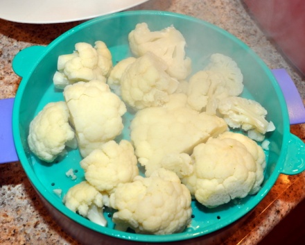 Arrange the cauliflower and rinse with water into the bottom to generate the steam.