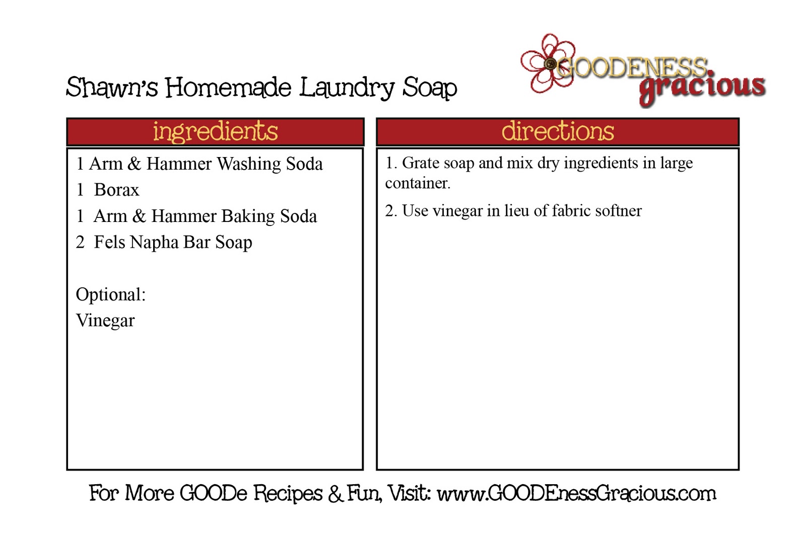 Shawn tells me that this is her favorite recipe and that she was shocked how well it worked! She says the clothes come out brighter and aren’t weighed down.
